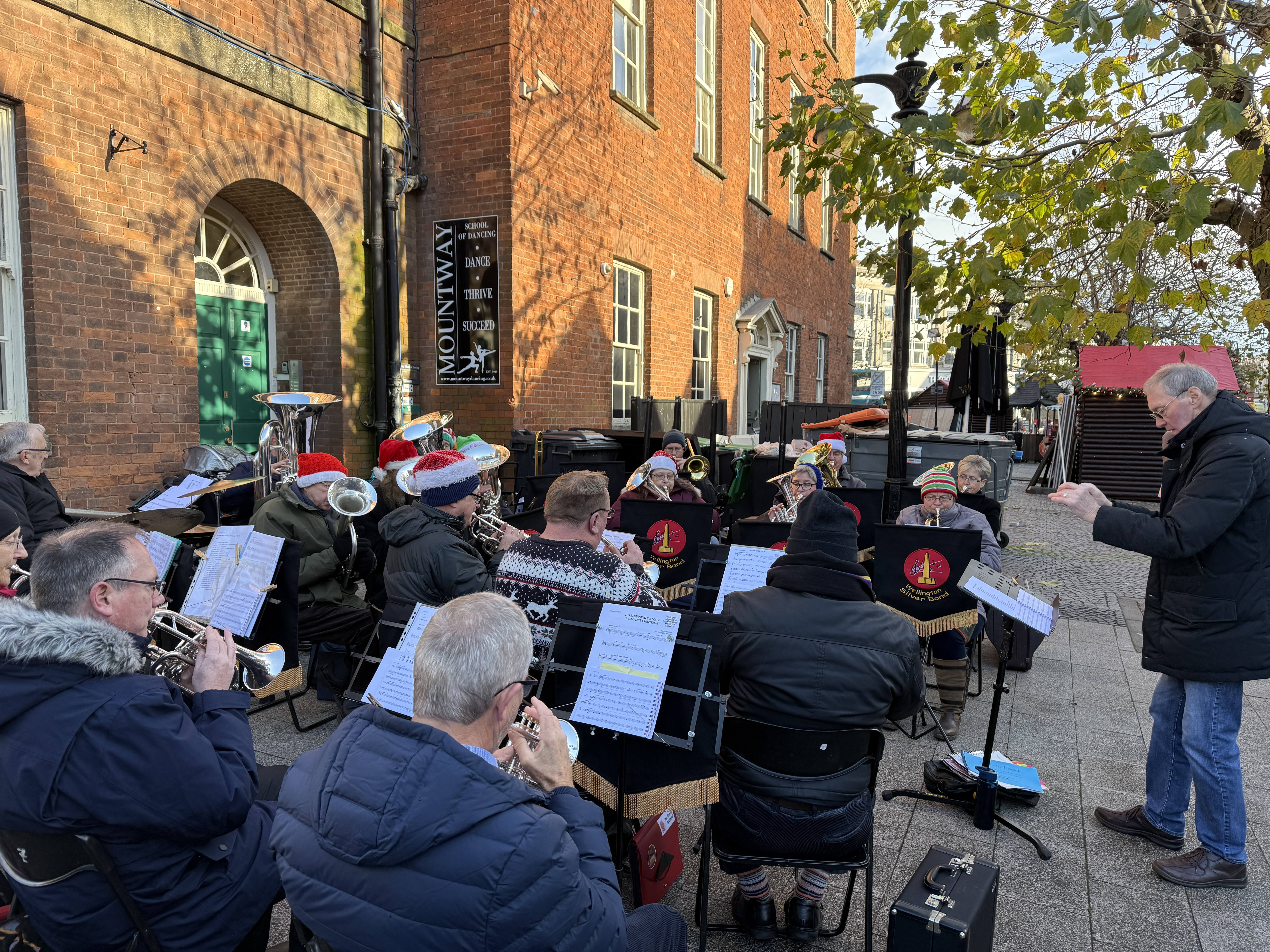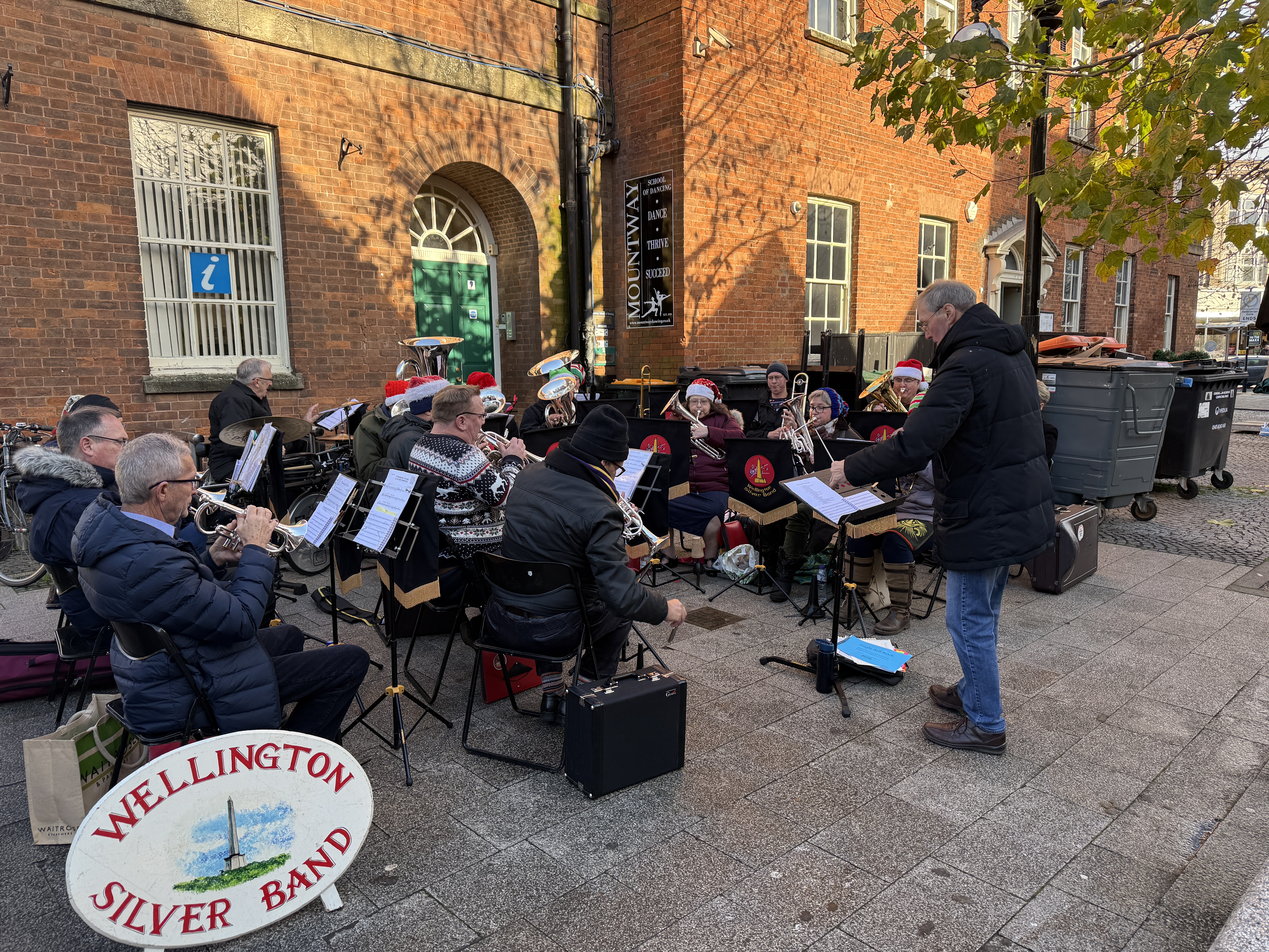 As part of Taunton Town Council’s Christmas entertainment the band played festive carols and Christmas Pieces, from 10.30am - 12.30pm, in Fore Street, Taunton on Sat 29th November. The band were very pleased to perform in Taunton again and hope this can become a regular feature of our celebrations in future. Thanks to the Town Council for their kind support.